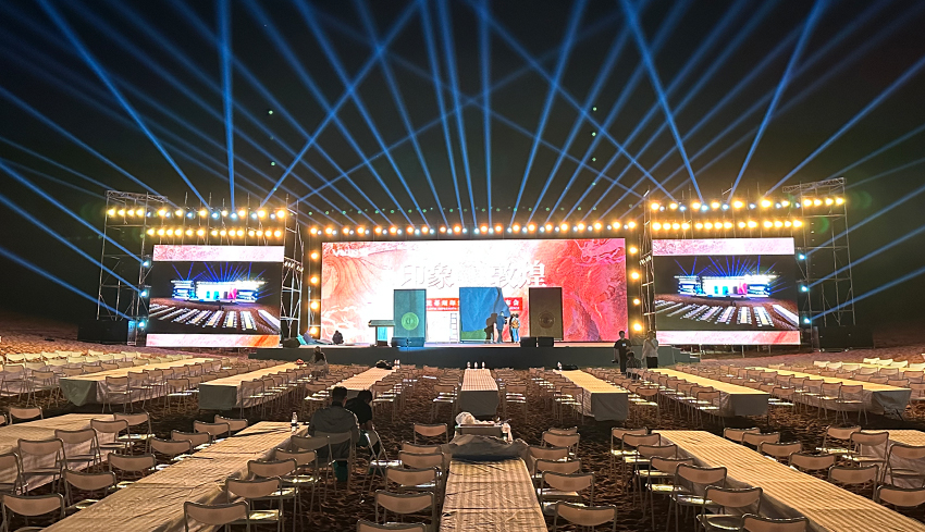 梵蒂詩敦煌系列新品發(fā)布活動(dòng)沙漠場(chǎng)地?zé)艄庖繇懻{(diào)試現(xiàn)場(chǎng)